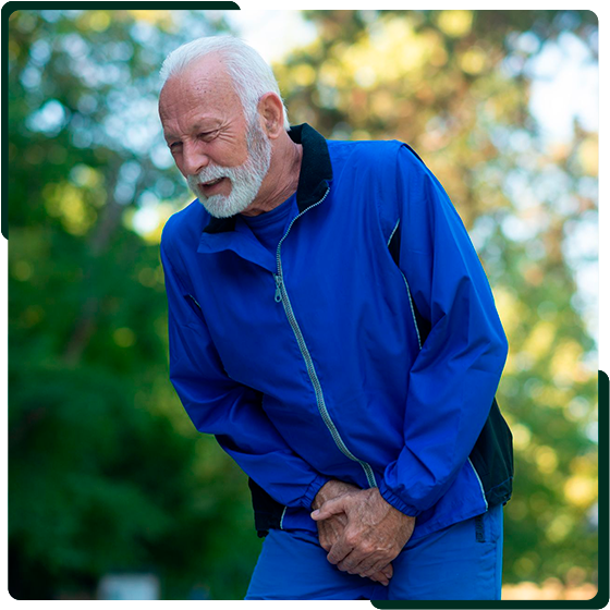 Ocorre quando uma parte do intestino se projeta pela região inguinal e pode alcançar a bolsa testicular, provocando dor ou sensação de peso, abaulamento na virilha e desconforto ao caminhar.